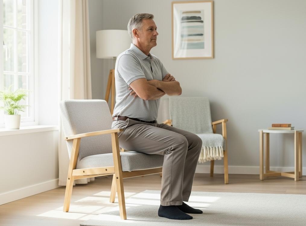 If you have joint pain or mobility issues, perform the test cautiously or with support. If standing from a chair causes discomfort, it may be best to discuss suitable exercises with a GP or physiotherapist.