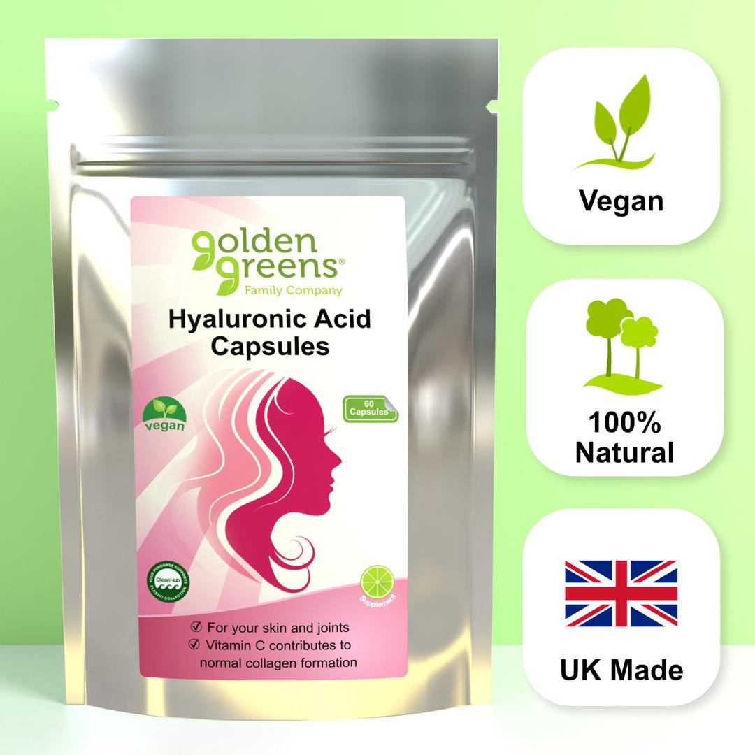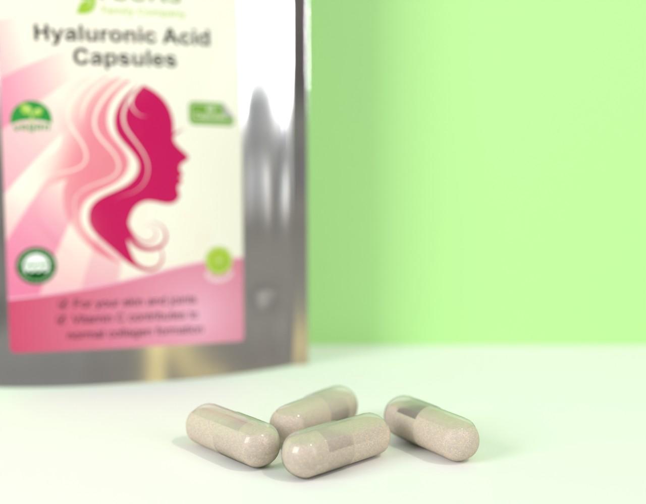 Our Hyaluronic Acid Capsules are enhanced with bilberry fruit extract and vitamin C*, which contribute to normal collagen formation for the normal function of skin, cartilage, and bones.