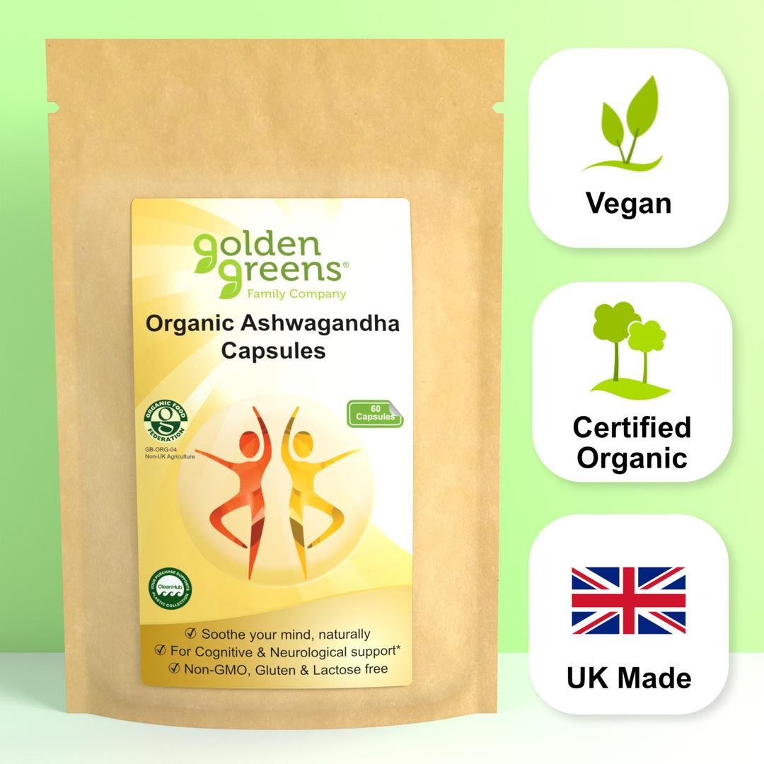 100% Certified Organic Ashwagandha, Hebridean Kelp, Vegan HPMC Capsules Shell* (approved non-organic ingredient).