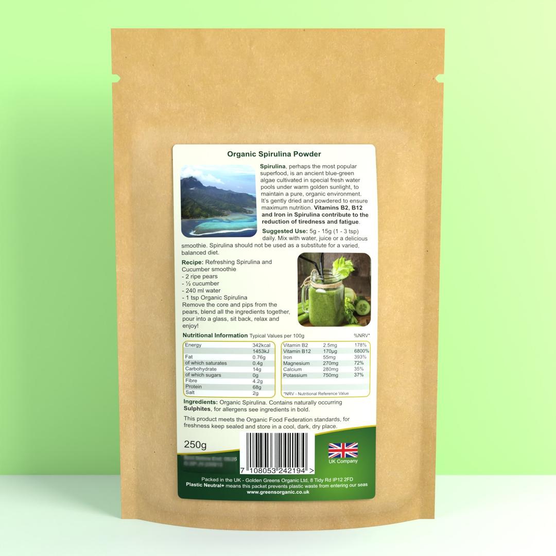 100% Certified Organic Spirulina powder.